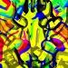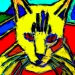 Image of a female cat that blends into the environment. As personnel to four cats I have daily contact with these fascinating animals. They are subject of my photography on a regular basis. The original digital photograph has been modified using several digital techniques in order to generate a colourful image resembling an abstract expressionist painting.