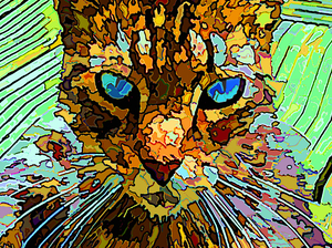 2020Pop Art image of a male cat, named Igor. As personnel to four cats I have daily contact with these fascinating animals. They are subject of my photography on a regular basis. The photograph has been modified using several digital processing tools in order to generate a coloured image resembling a popart expressionist painting. Attention: the work is delivered framed. For more information see the Delivery page.